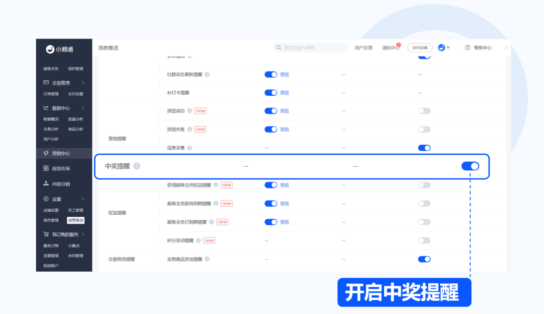 温馨提示:为了及时让学员了解中奖情况,商家可开启中奖提醒,学员中奖后,将同步发送短信告知学员。