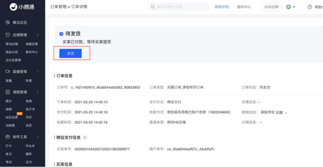 小鹅通店铺里的实物商品大多是线上发货,但是如果碰到用户住的很近,或者同城自提的情况,没有物流信息,要怎么发货呢?
