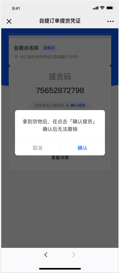 买家到店时扫描商家二维码,可以快速查看订单及提货码,方便商家核对商品信息并进行订单核销。