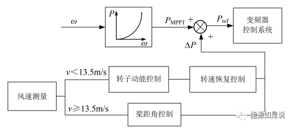 本文提出了全风速范围内风电参与系统的调频策略,其中,额定风速下采用转子动能控制,额定风速上采用桨距角控制,进而实现风电机组实时调频。