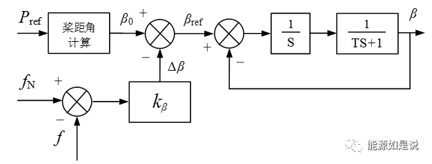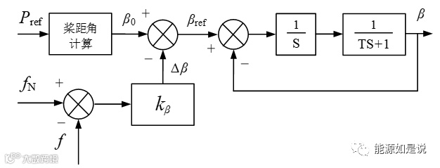 由于风电具有快速响应频率变化的能力,而变桨系统机械执行机构又相较于转子动能控制具有一定的时滞性,因此在接收到缺额信号∆P后,v<13.5m/s的风机可快速释放转子动能,优先为系统提供短暂有功支撑,v≥13.5m/s的风机则通过桨距角控制对系统释放备用的有功功率。