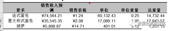 3种商品的预测重量及原理的采购数量在数据模型种已经完成计算,如下图所示: