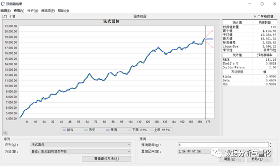 为了保证效果,这里使用ARIMA模型预测,可以看到法式面包有趋势但没有周期;意大利面包既有周期又有趋势性。