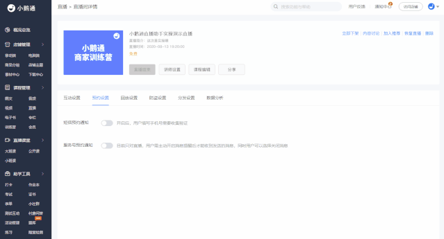 同时,商家更可以利用小鹅通直播的引导加群,开课提醒功能。