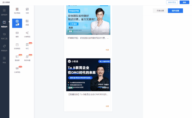最后在店铺装修环节,利用小鹅通搭建店铺主页的组件,将每周的主题直播串联起来,给学员展示直播的丰富性和连贯性。
