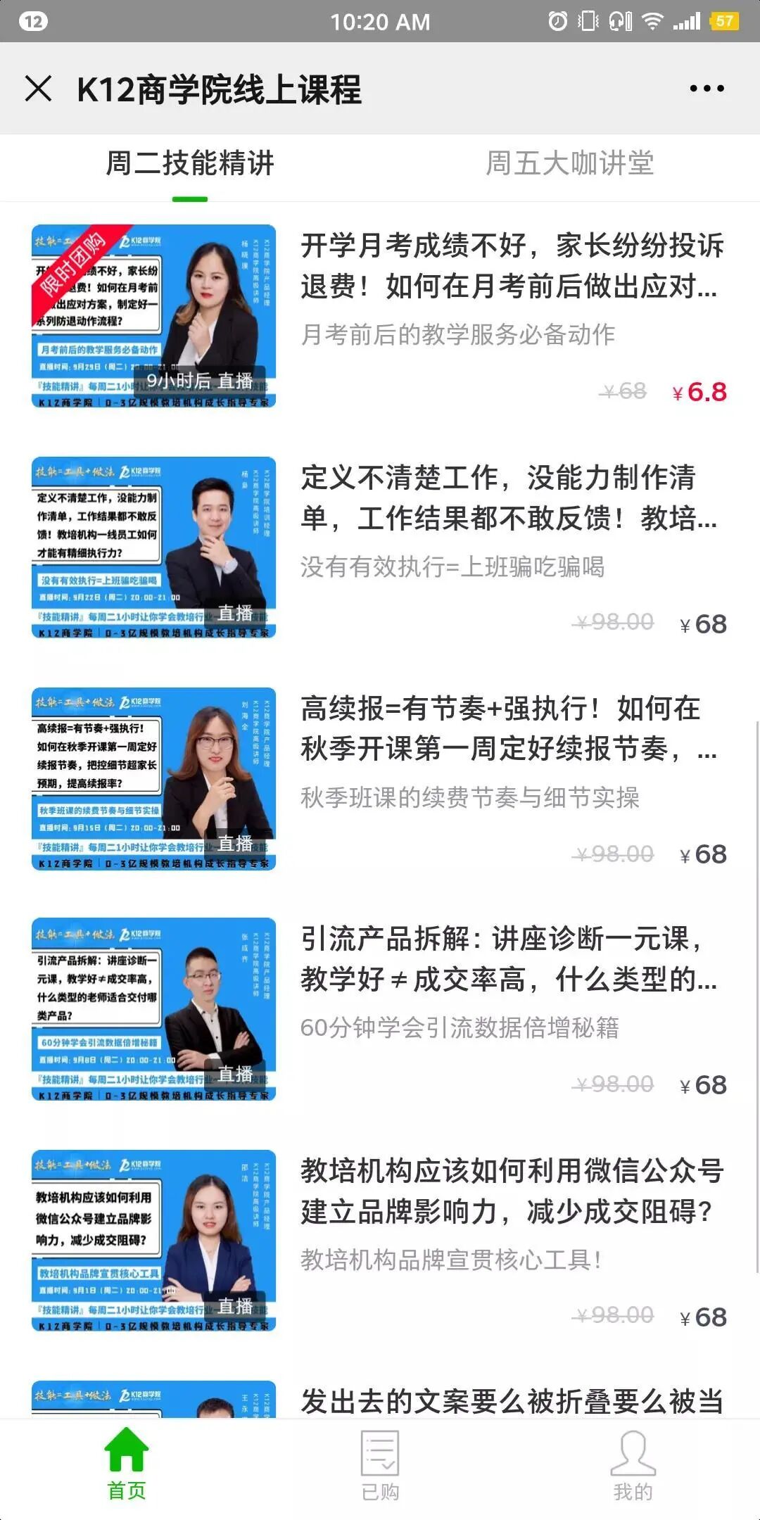 中间也可以穿插一些学员故事分享、新课推荐、机构发展故事等直播,给用户带来新鲜感,同时也起到推动品牌宣传和课程转化的作用。