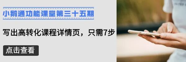 希望本期的功能课堂能为您的业务寻找到新的灵感!如果在运营方法&功能使用上还有哪些困惑,欢迎在下方留言给鹅院长哟。
