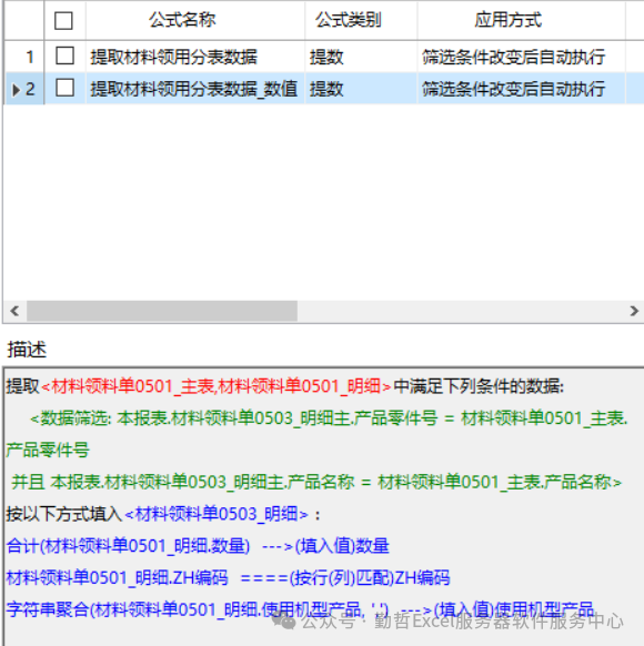 本报表主表数据来源于其明细表的组合,可使用自定义扩展函数。