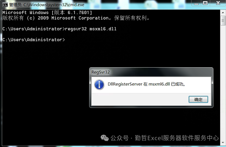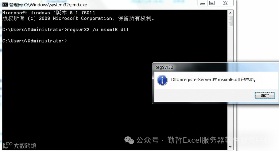在dos下输入命令“regsvr32 /u msxml6.dll”,然后点击确定。这一步是为了尝试卸载已注册的MSXML 6.0组件。