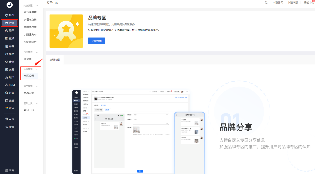 专区管理 - 专区设置 - 品牌设置 - 分享设置