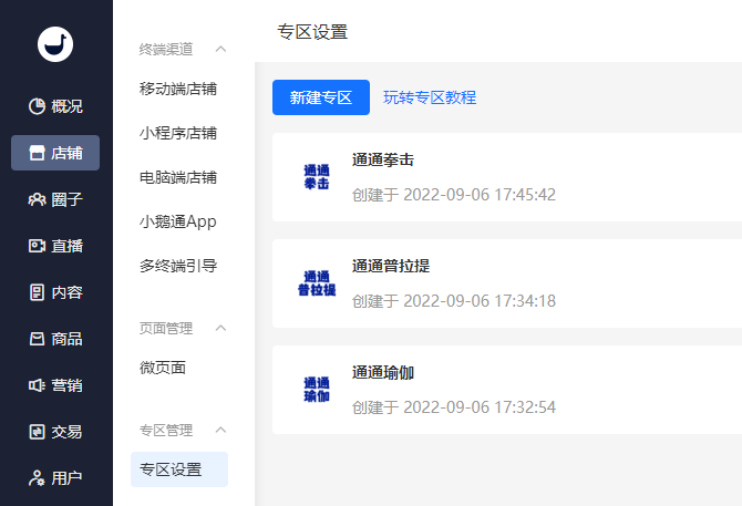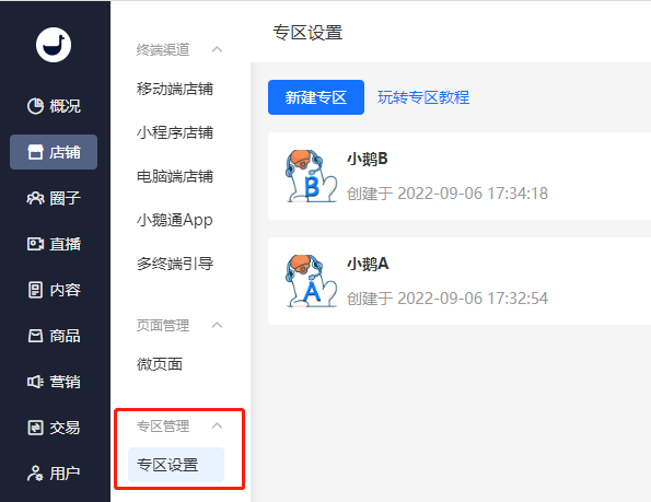 打开 小鹅通管理台 - 专区管理 - 专区设置 - 新建专区
