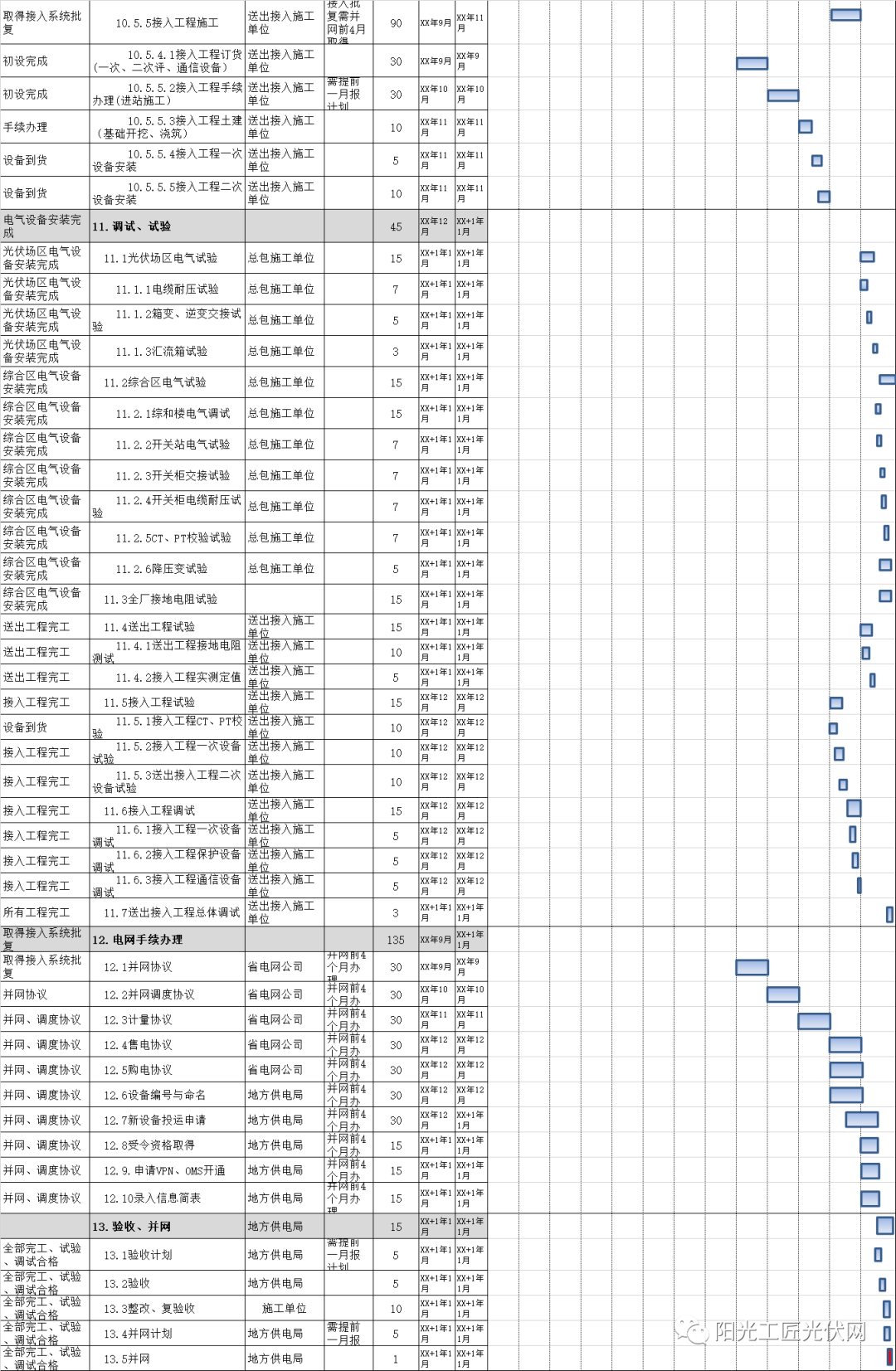 光伏电站开发、建设、并网的进度甘特图