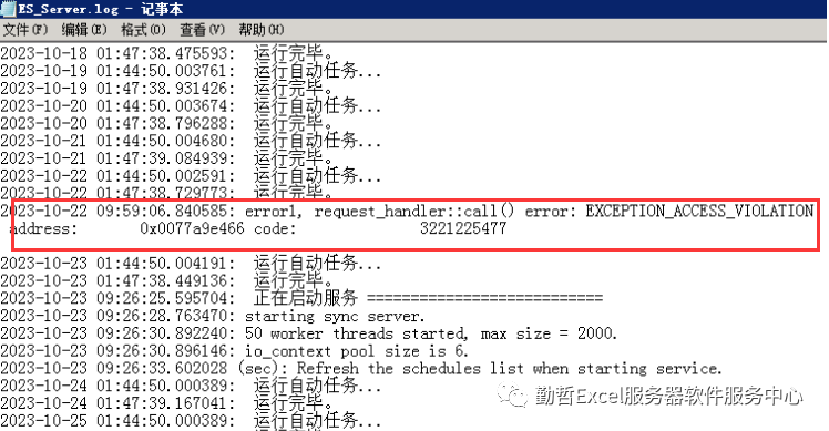 分析:检查日志发现有如下提示:error1,request_handler::call() error:EXCEPTION_ACCESS_VIOLATION address:0x0077a9e466 code:3221225477