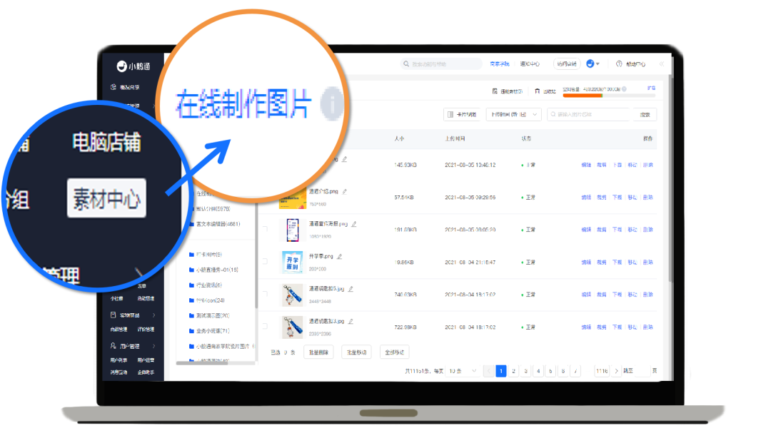 ▪ 在线制作图片:在线选用模板、设计图片,自动上传至素材中心,让店铺装修做得快又好看。