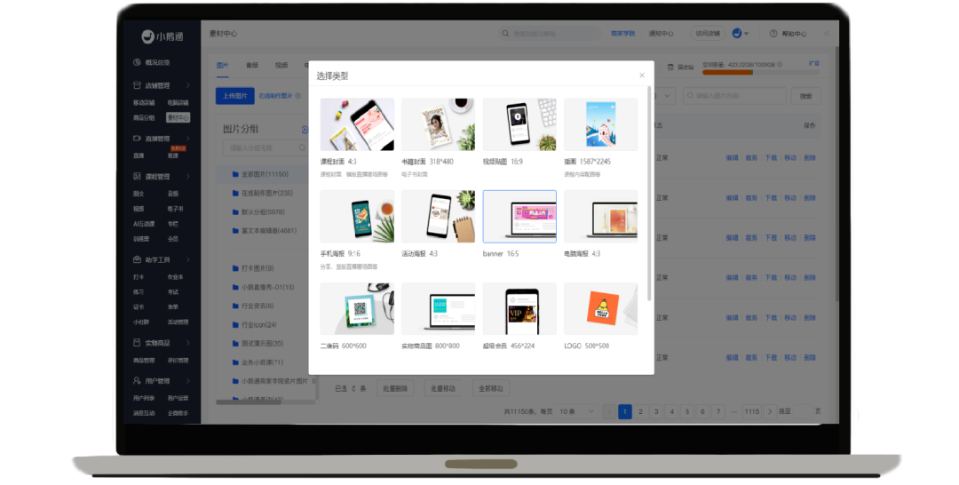 图片格式匹配,与小鹅通课程商品的图片格式一一对应,生成后自动上传至素材中心,随时调用,无论是做课程封面、直播海报还是打卡日签,超高颜值让你课程商品广泛传播!