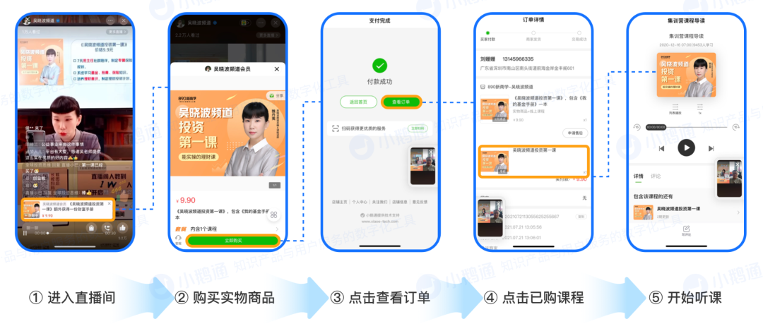 这样,用户只要完成下单,就能一键从订单页进入课程页面听课,大幅缩短听课路径。