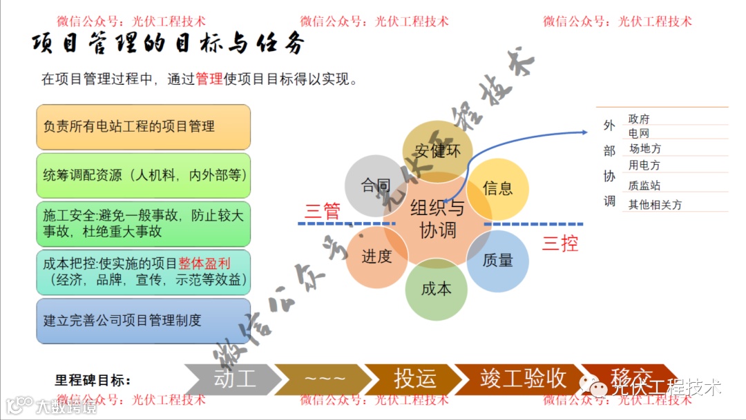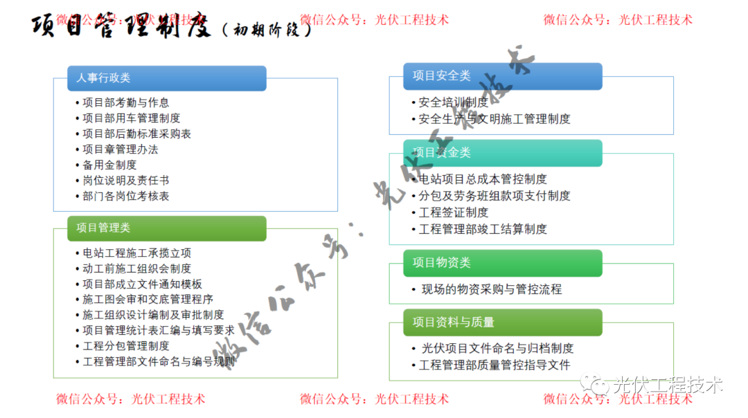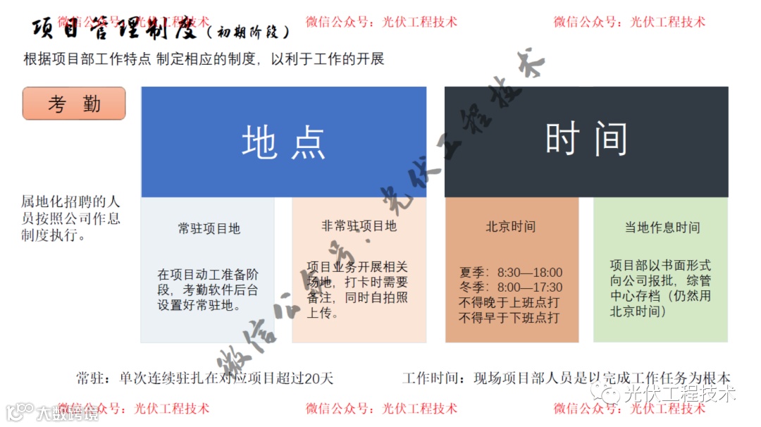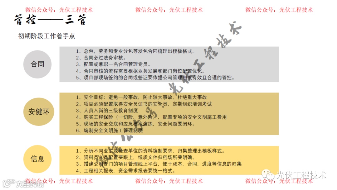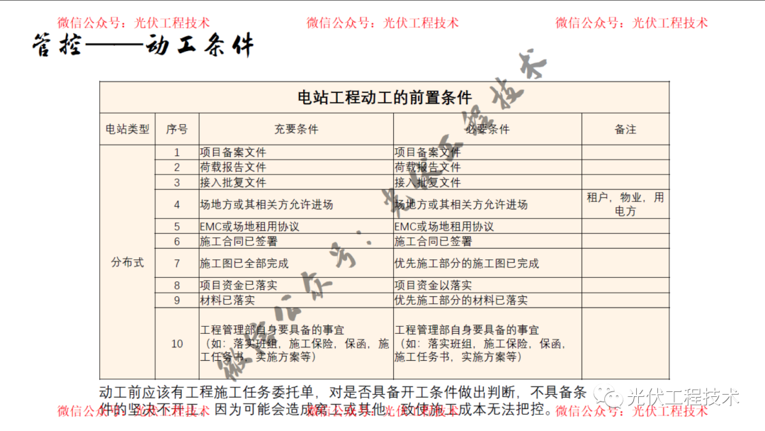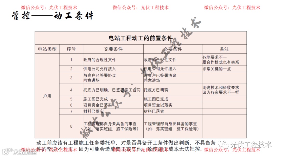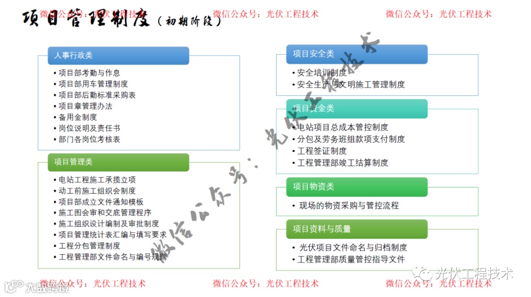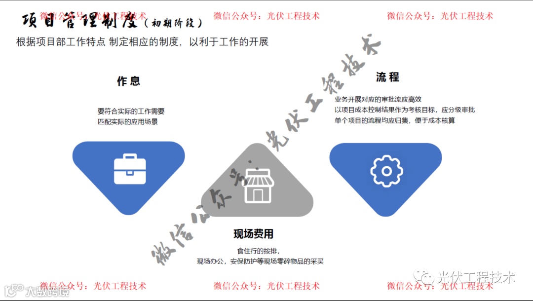 新能源工程在实施的时候一般都是时间紧,任务重,有些是边画图边施工。在开发与技术,技术与工程,开发与工程之间一般都是有交叉实施的事项存在。新能源工程不同于其他常规工程的最大特点我认为就是先投运后竣工验收(这里指的是投资方业主的竣工验收),在项目具备投运条件的时候,由相关部门验收检查,在确认没有问题的情况下会被允许投运,然后才是投资方业主的竣工验收。