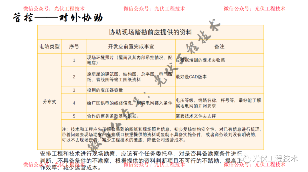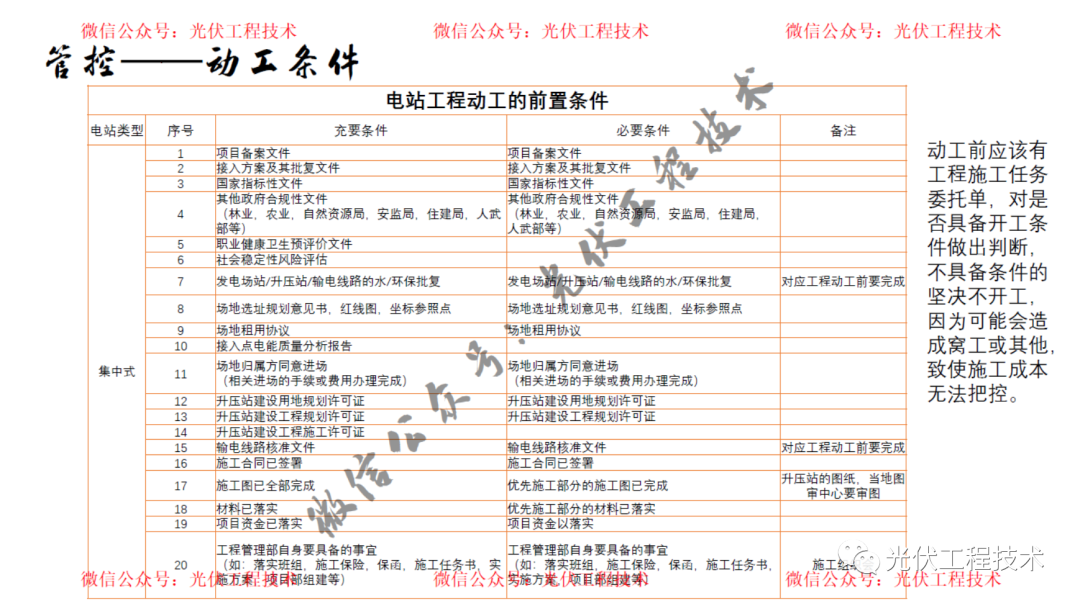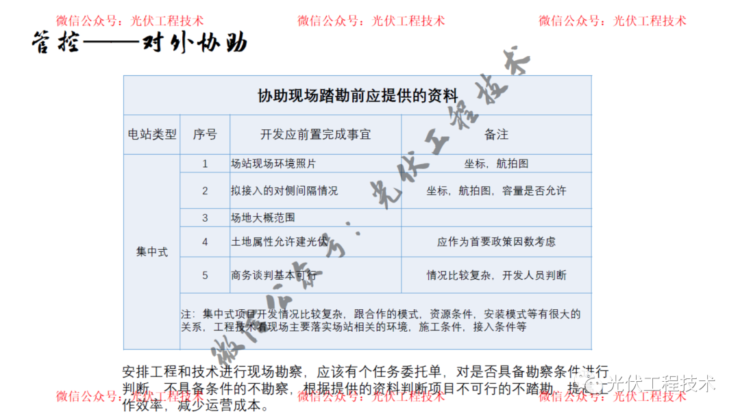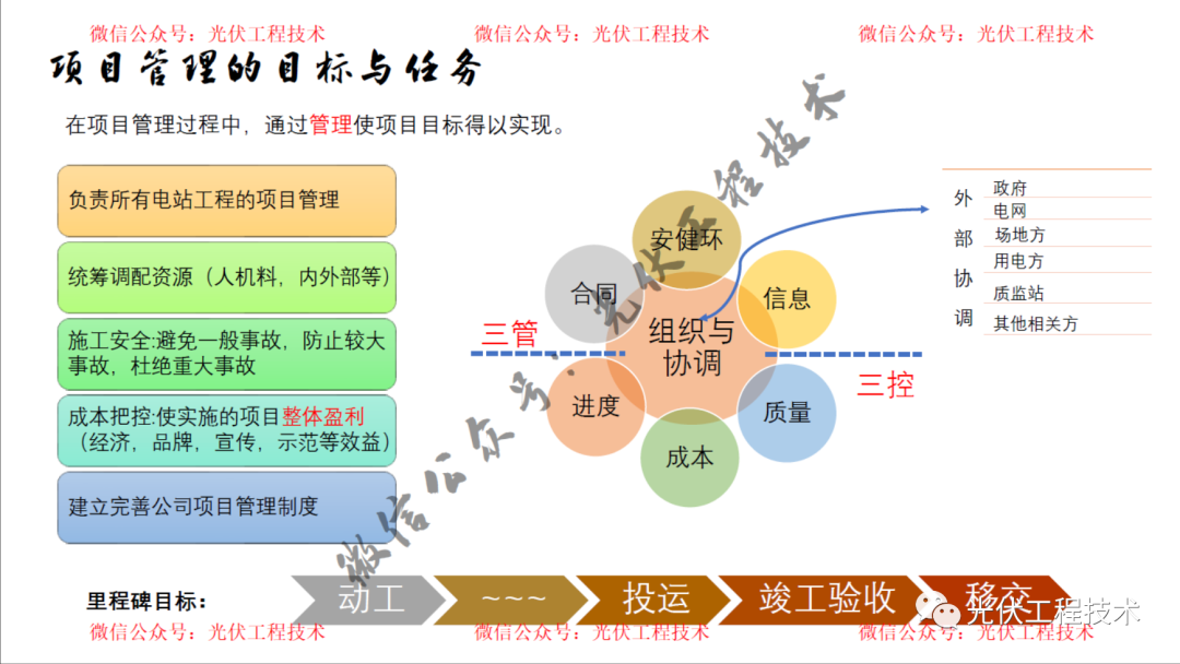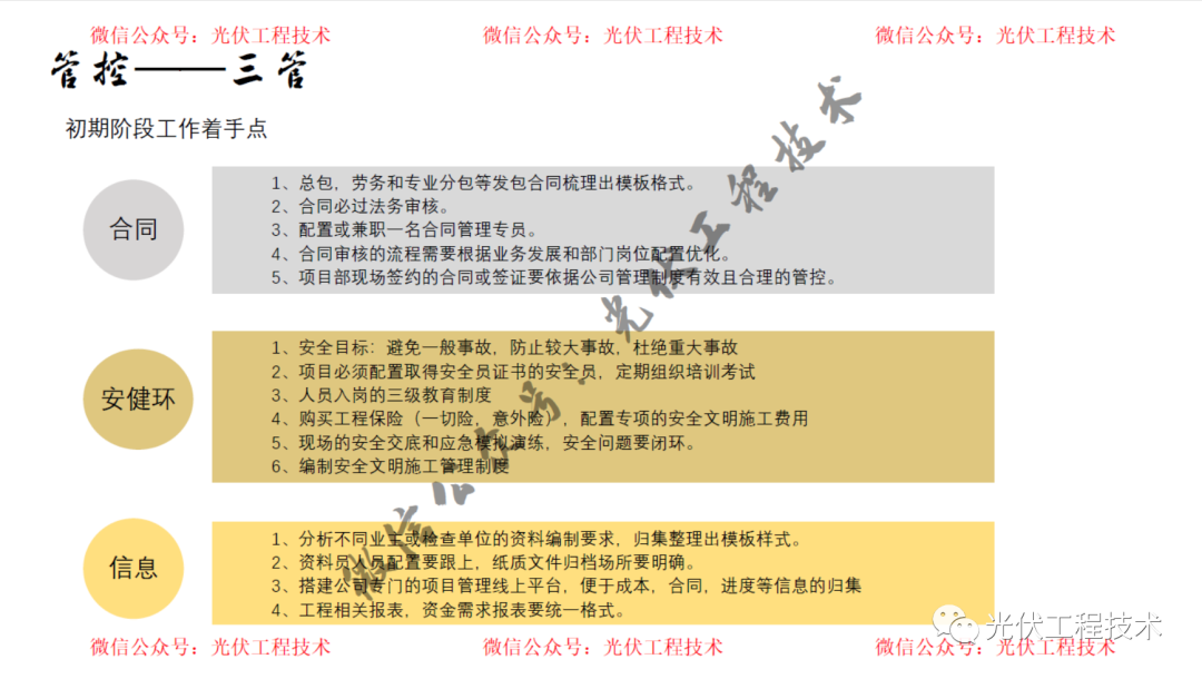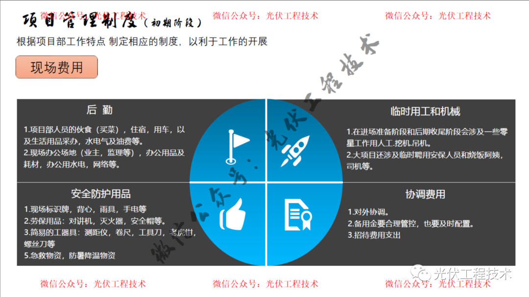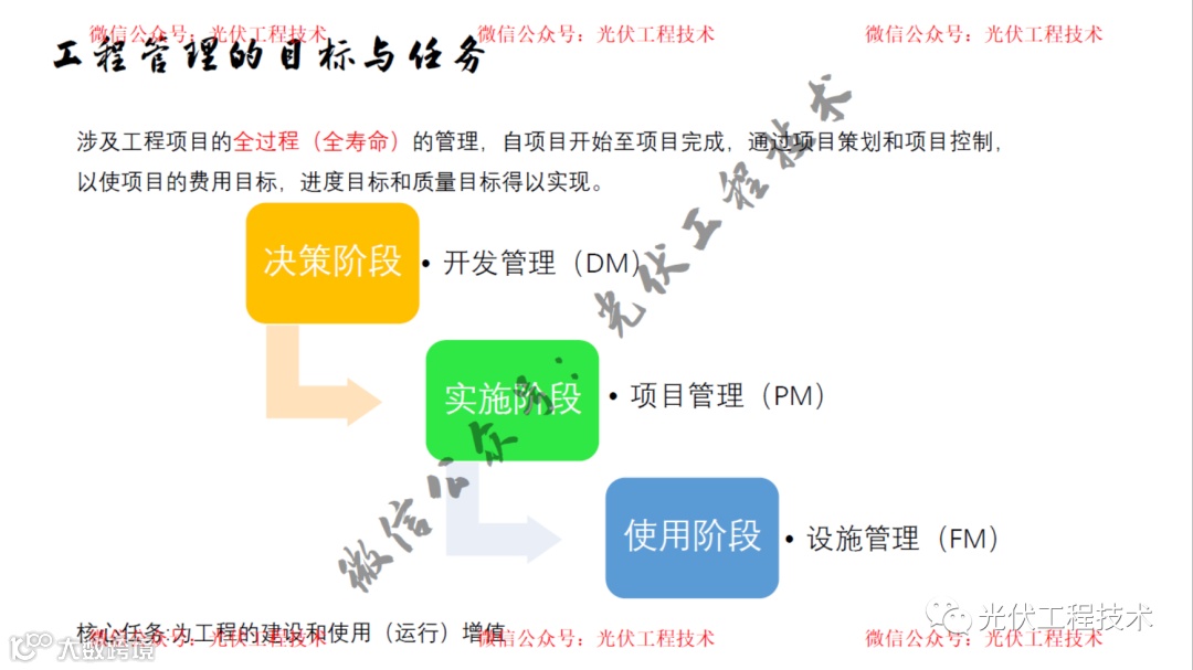 新能源工程在实施的时候一般都是时间紧,任务重,有些是边画图边施工。在开发与技术,技术与工程,开发与工程之间一般都是有交叉实施的事项存在。新能源工程不同于其他常规工程的最大特点我认为就是先投运后竣工验收(这里指的是投资方业主的竣工验收),在项目具备投运条件的时候,由相关部门验收检查,在确认没有问题的情况下会被允许投运,然后才是投资方业主的竣工验收。