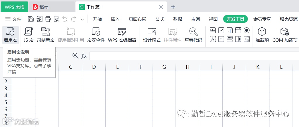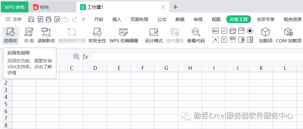 问题:在wps中启用宏功能时,提示需要安装VBA支持库。