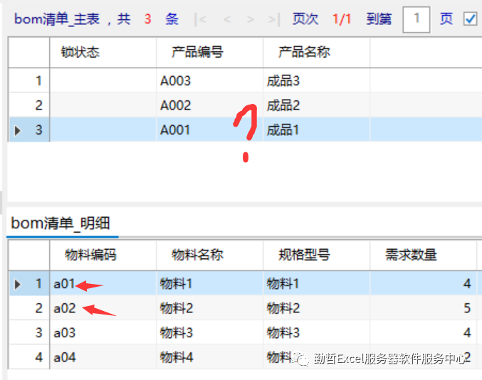 需求:我想通过物料编码查其对应的产品名称。比如:我想查询哪几个成品用到了物料1和物料2?