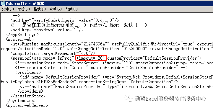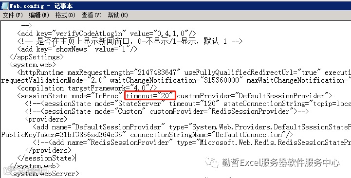 问题:在Web.config中设置sessionState后,如设置为30分钟,但是访问esweb时每次都是达不到时间(超过20分钟)就提示超时。如下图: