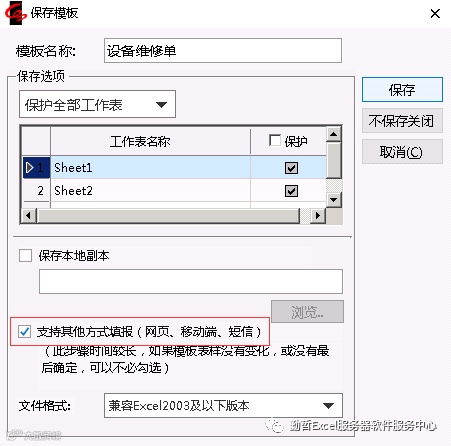 首先定义好模板,勾选支持其他方式填报(网页、移动端、短信)