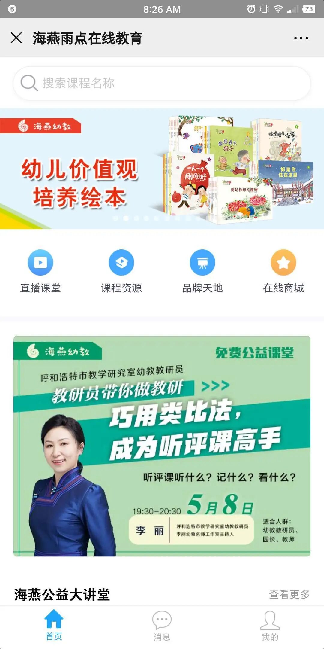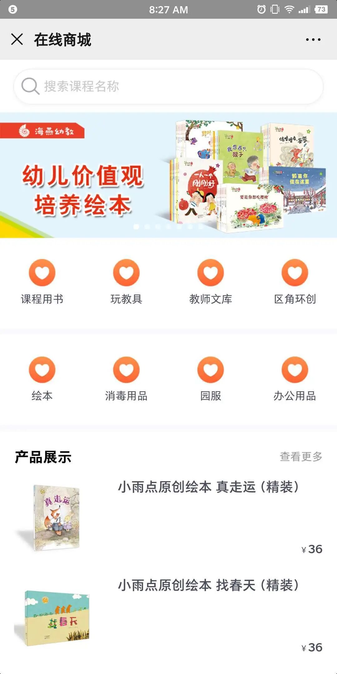 「海燕雨点学前教育」公众号以及小鹅通店铺首页