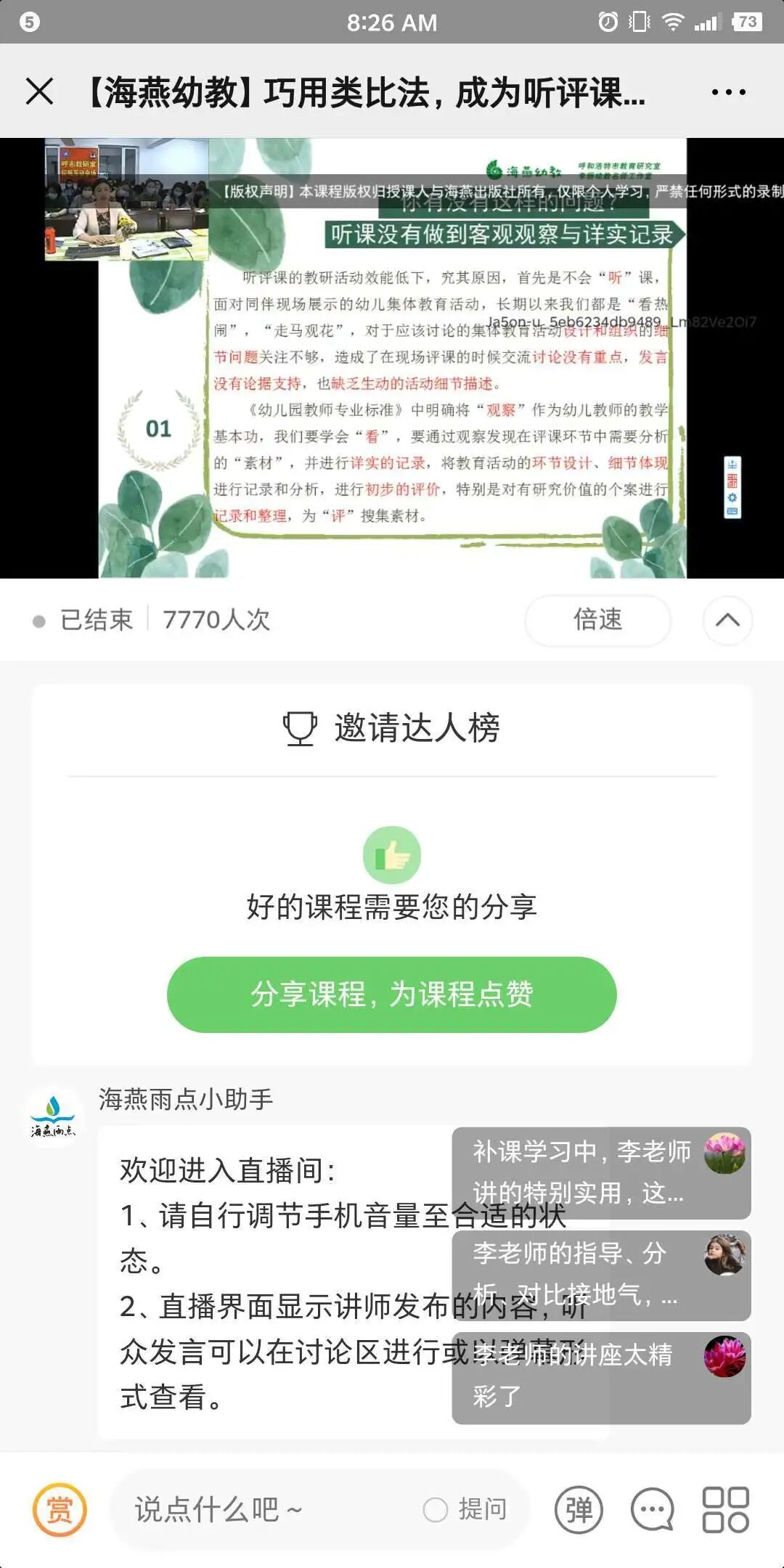 “小鹅通直播可以帮助我们突破地域的限制,我们还曾邀请到内蒙古的教研老师来到我们的直播间,为全国各地的园长、老师分享教研经验。”