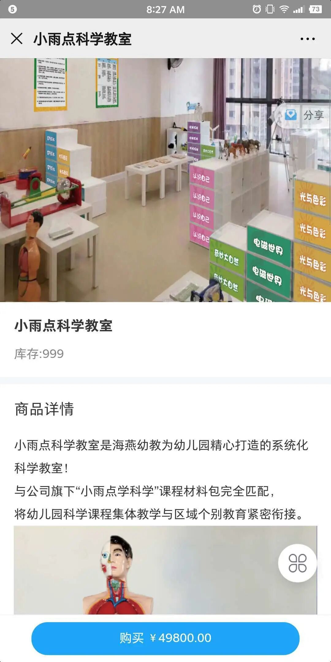 在「海燕雨点」的小鹅通店铺,从覆盖幼儿园全学段的五大领域课程、绘本课程和活动方案、适合阅读区的原创绘本,到49,800元的小雨点科学教室解决方案,学员都可以在店铺进行查看和选购,个性化解决当前幼教业务的难题。