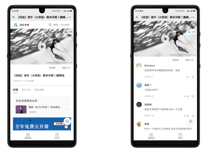 之前,优质的建筑课程是比较封闭的,只能在大学课堂里面听到,没办法通过线上的方式触达更多人。但是在2020年,在线直播突然非常火爆。通过小鹅通直播功能,这件事就成为了可能。