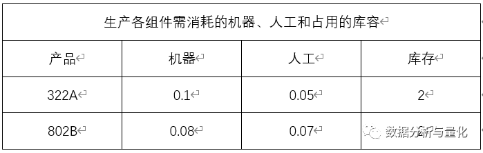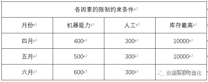 同时员工的工作时长、机器的最大生产能力和库容等因素均是限制生产的约束条件,如下图所示: