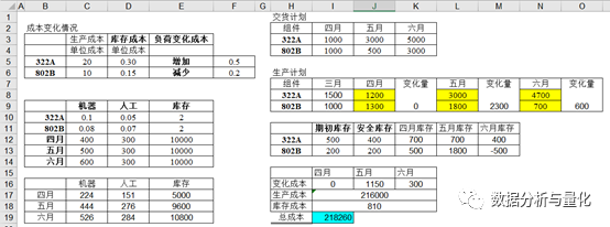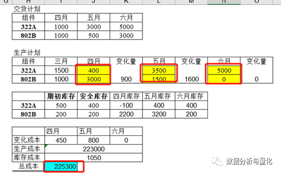 库存成本= 每月322A组件生产件数*库存单位成本+每月802B组件生产件数*库存单位成本。