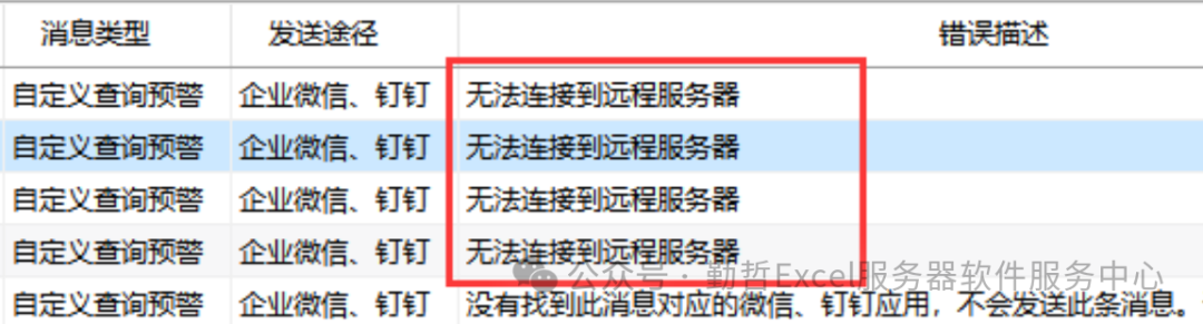 问题:配置好企业微信后,发送消息失败,提示:无法连接到远程服务器?