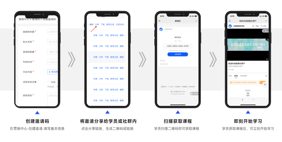 2019年,「易效能」正式使用小鹅通做免费课的落地,使用小鹅通邀请码连接线上线下业务。