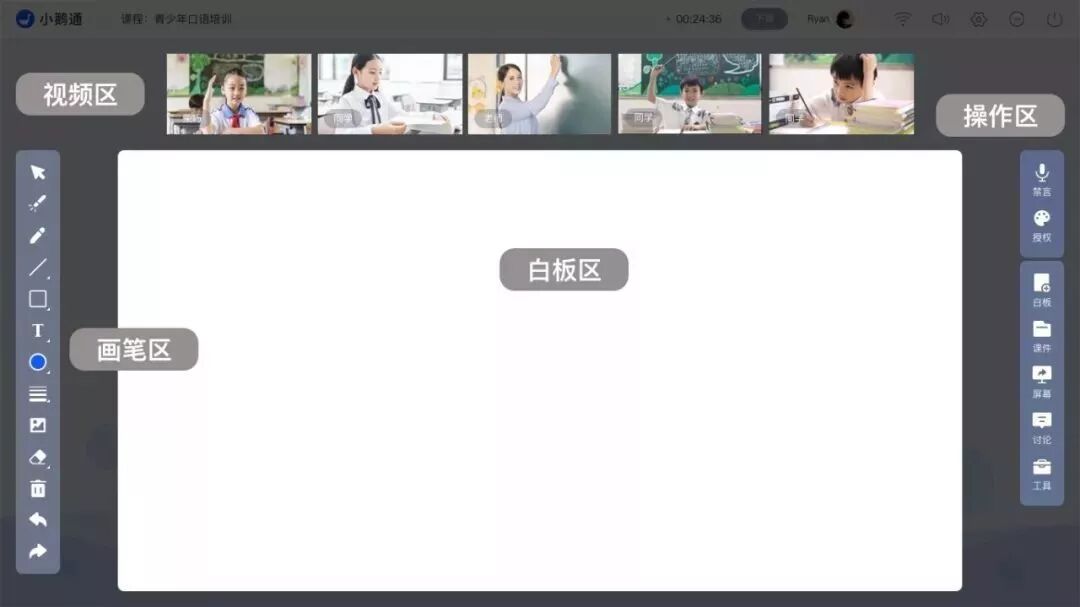 主要功能:视频直播、白板画笔互动、课件展示、评论互动、答题器、计时器等。