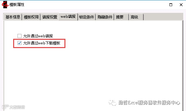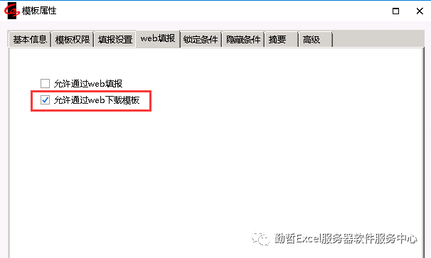 首先,在模板属性--web填报位置,勾选"允许通过web下载模板"。