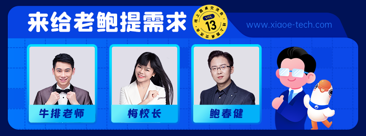以上,就是打卡功能的最新升级啦。如果您对我们有更多需求或者建议,欢迎点击下方《来给老鲍提需求》直播间,直接向小鹅通CEO老鲍提需求!优秀的建议还会有小鹅通专业版和鹅公仔赠送哟~