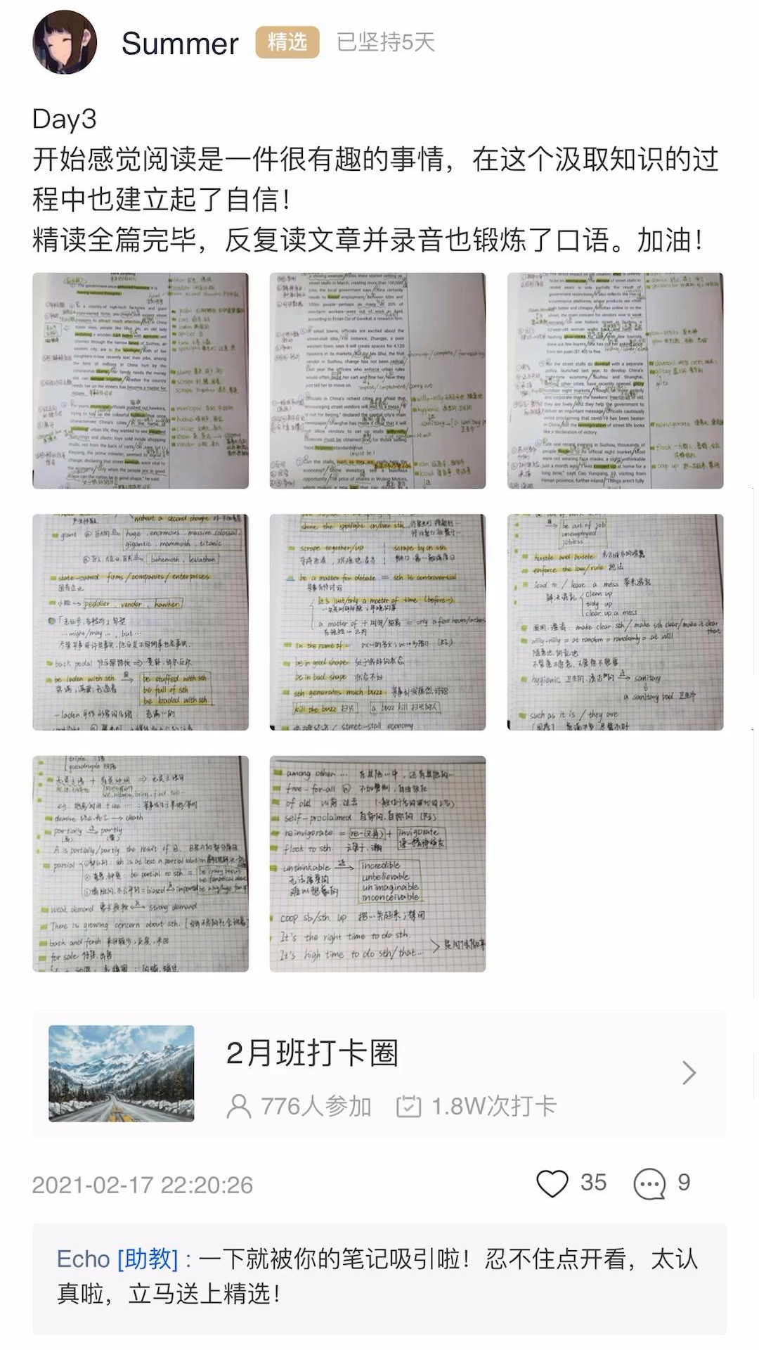 比如:“又完成了一天的打卡,好棒呢!” “内容不错,继续加油~”等,鼓励学员持续自主学习。