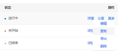 新版打卡功能支持复制之前已创建的打卡内容,极大地缩短打卡创建时间。在已创建的打卡右侧操作栏,鼠标移入“更多”,可直接复制内容。