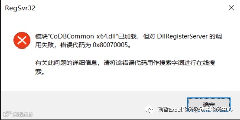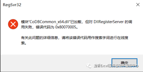 现象:在dos下注册dll文件,提示模块"xxx.dll”已加载,但对DllRegisterServer的调用失败,错误代码为0x80070005。有关此问题的详细信息,请将该错误代码用作搜索字词进行在线搜索。如下图: