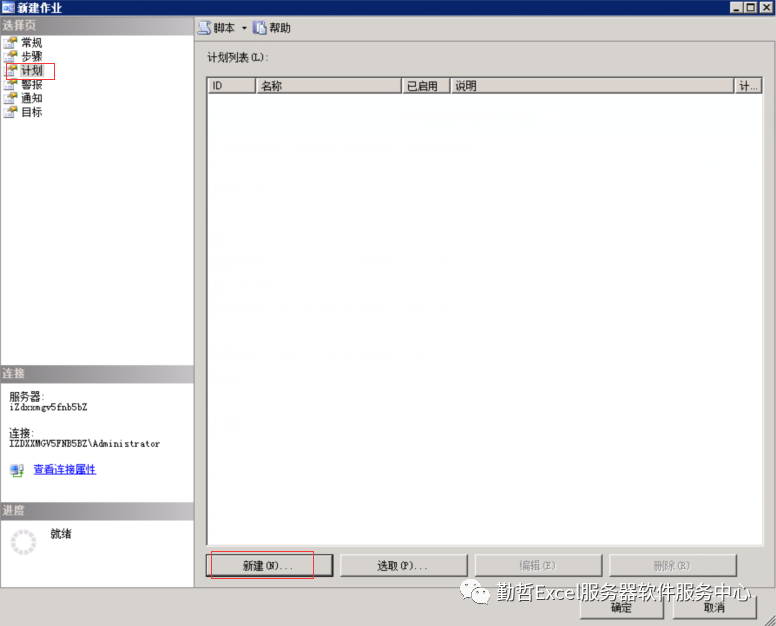 6、点击左侧选项【计划】,在显示的页面中点击左下角的【新建】