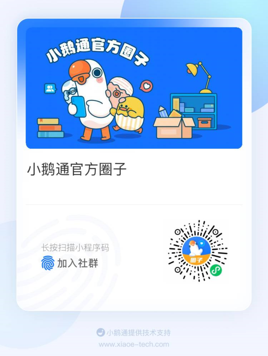 小鹅通官方鹅圈子也开通啦,第一时间获取小鹅通产品动态、官方活动、案例故事等最新资讯,马上扫码加入!