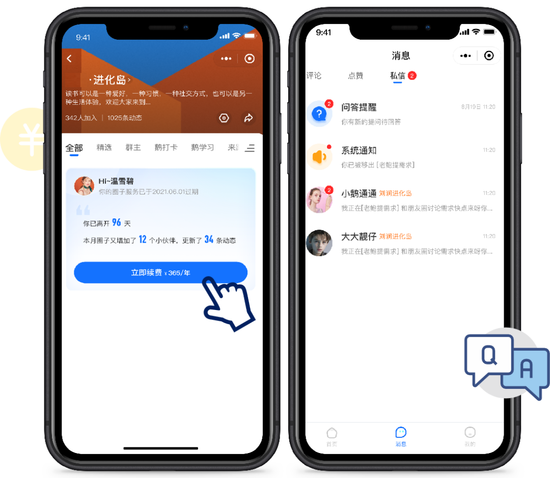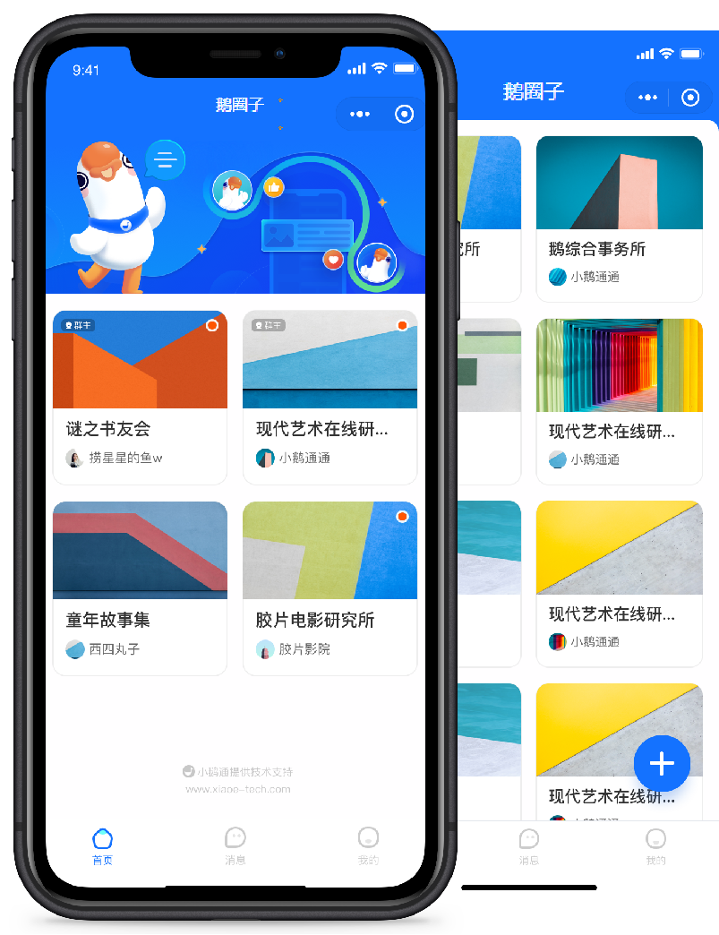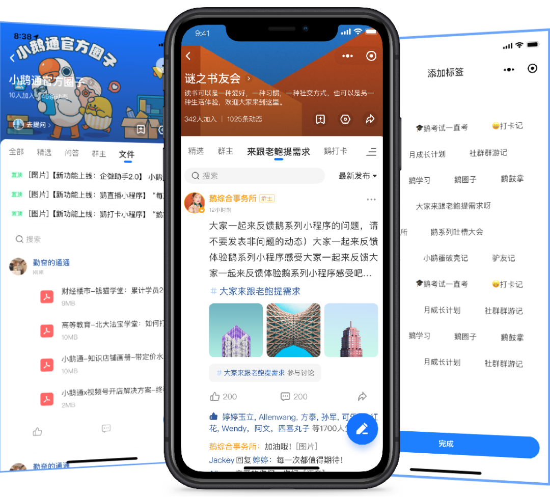 读书会、健身社群、考研打卡、生活点滴、艺术手作...都可以用「鹅圈子」小程序来打造你的专属兴趣社群!