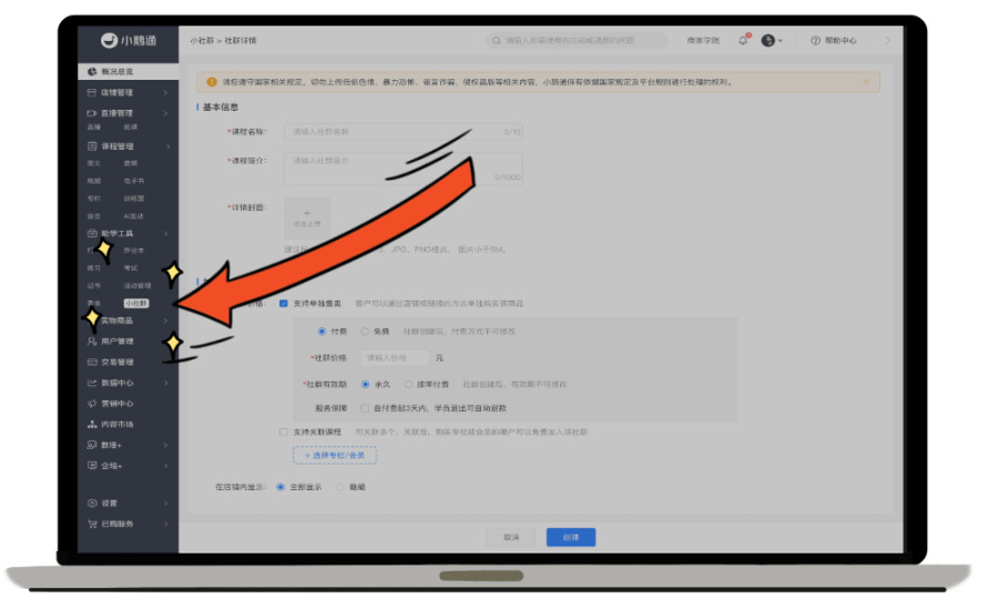 如果你已经有小鹅通店铺,你在知识店铺创建的小社群都将同步「鹅圈子」小程序上,你既可以在手机上对「鹅圈子」小程序进行管理,也可以用电脑登录管理后台,在【助学工具-小社群】里找到所有圈子数据,并进行管理。