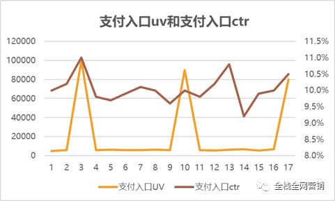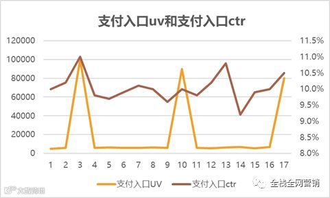 这个时候不能单看一个指标了,加上了支付入口ctr,同支付入口UV进行交叉分析。