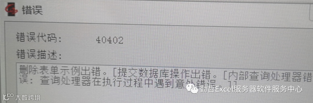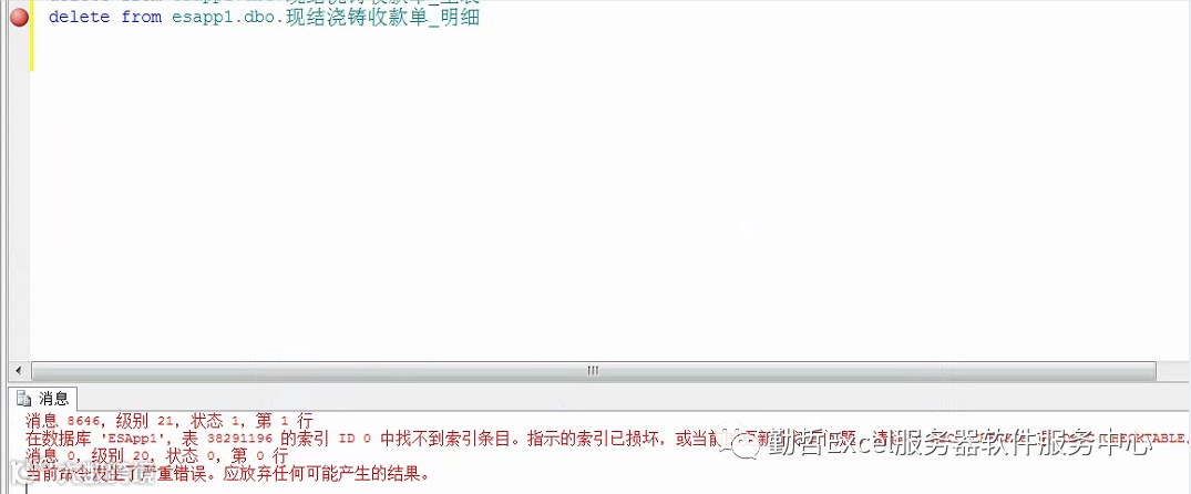问题:删除数据的时候,提示提交数据库操作出错。[内部查询处理器错误:查询处理器在执行过程中遇到意外错误]。如下图: