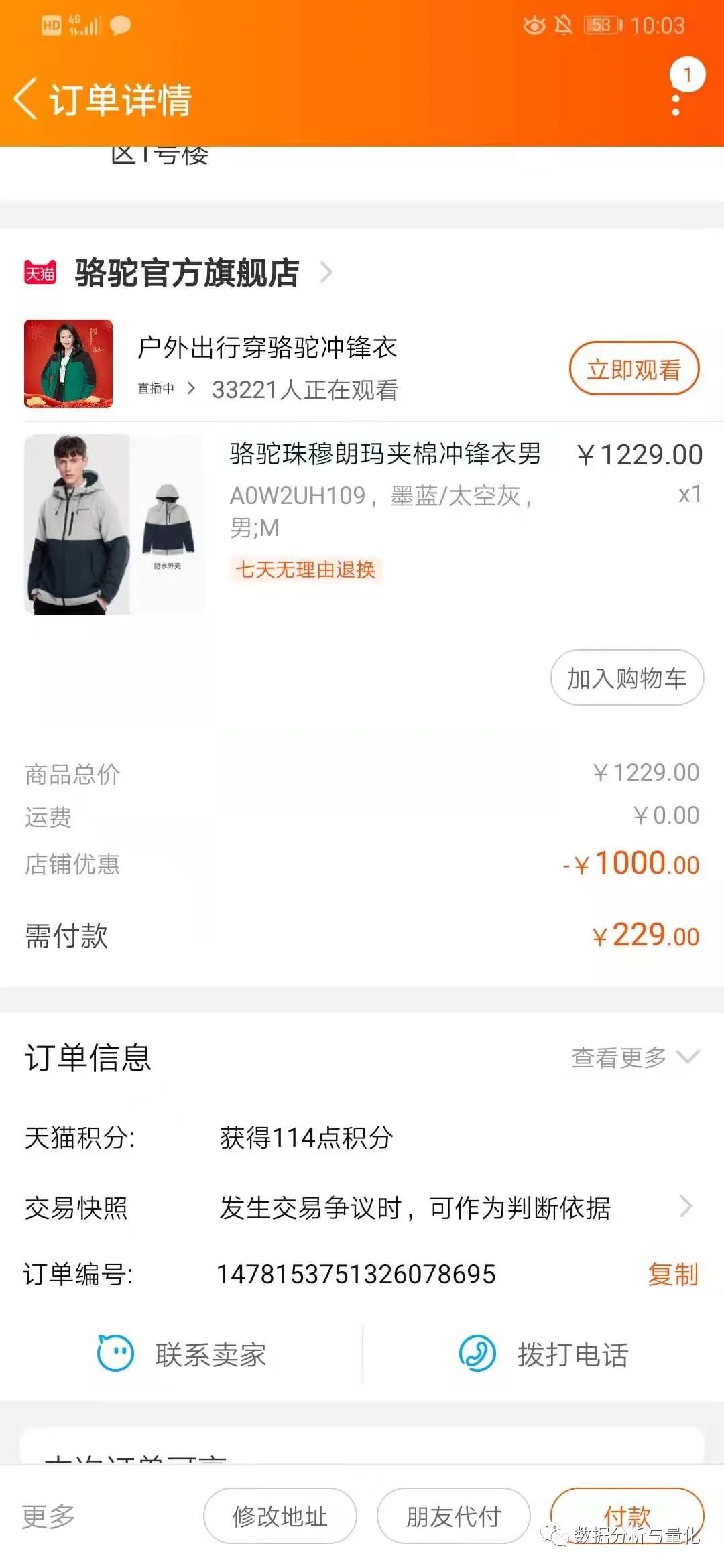 229元买原价1229元的骆驼旗舰店冲锋衣