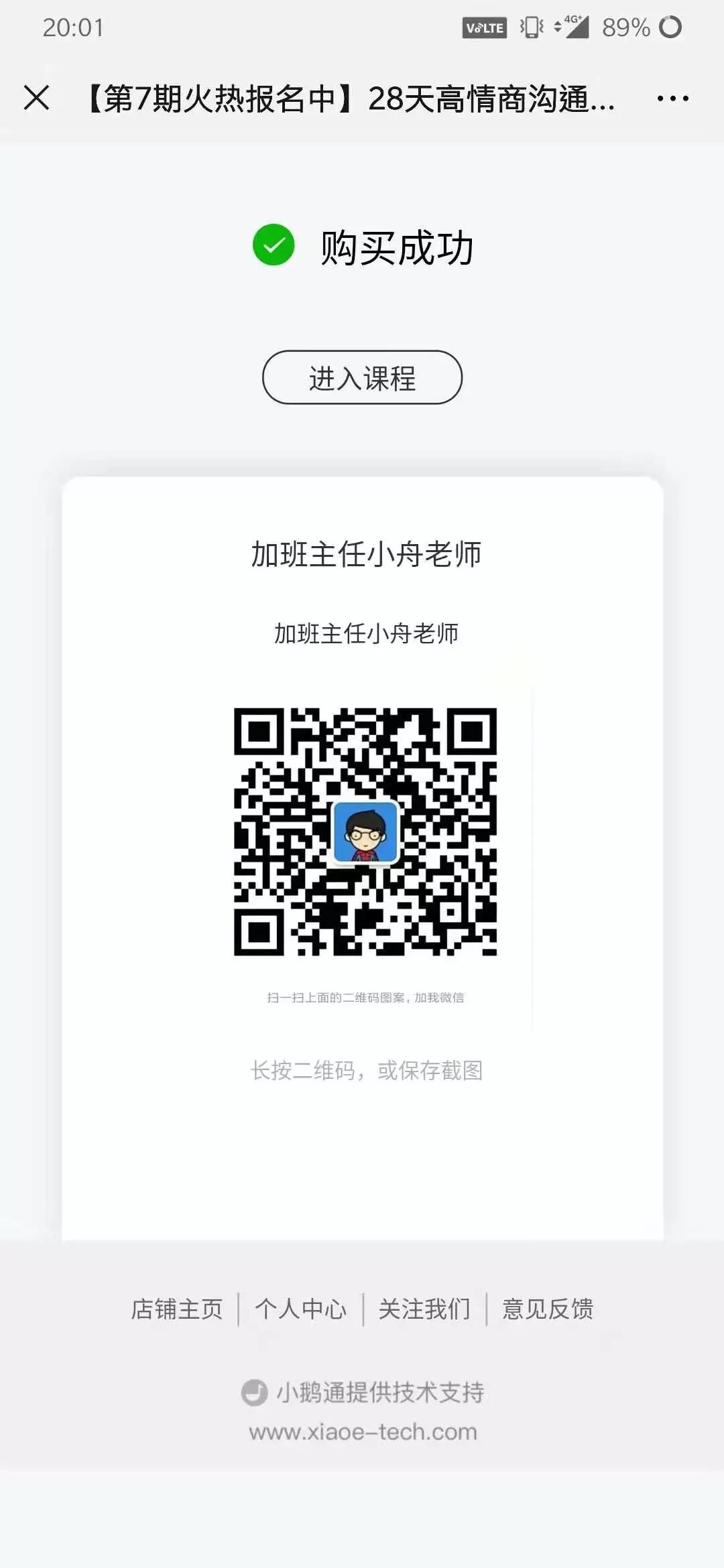 同时,该特训营通过微信群进行统一管理。每个学员报名后,在小鹅通报名成功页,有小助手的二维码,学员可以通过该二维码添加小助手,并被分配在相应的微信群中。