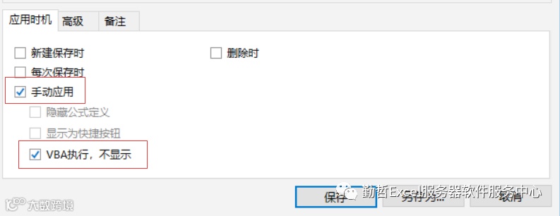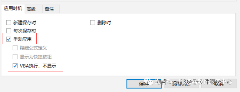 说明:仅专业的软件开发人员利用Excel服务器做二次开发时才需要用到,因为需要使用者拥有编程相关的一些背景知识才能正确使用。非专业用户,一般不建议使用,可绕道。本身保存或删除时就会执行回写公式。