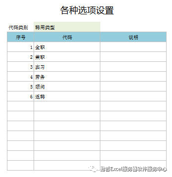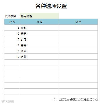 其中:性别、婚姻状况、民族、政治面貌等处均设置下拉,这些下拉选项通过一个名为”选项设置“的模板来统一定义。如下图: